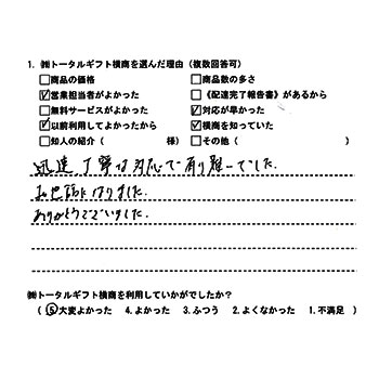 迅速丁寧な対応で有難いでした。お世話になりました。ありがとうございました。