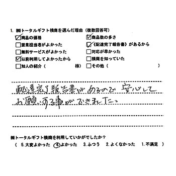 配達完了報告書があるので、安心してお願いする事ができました。