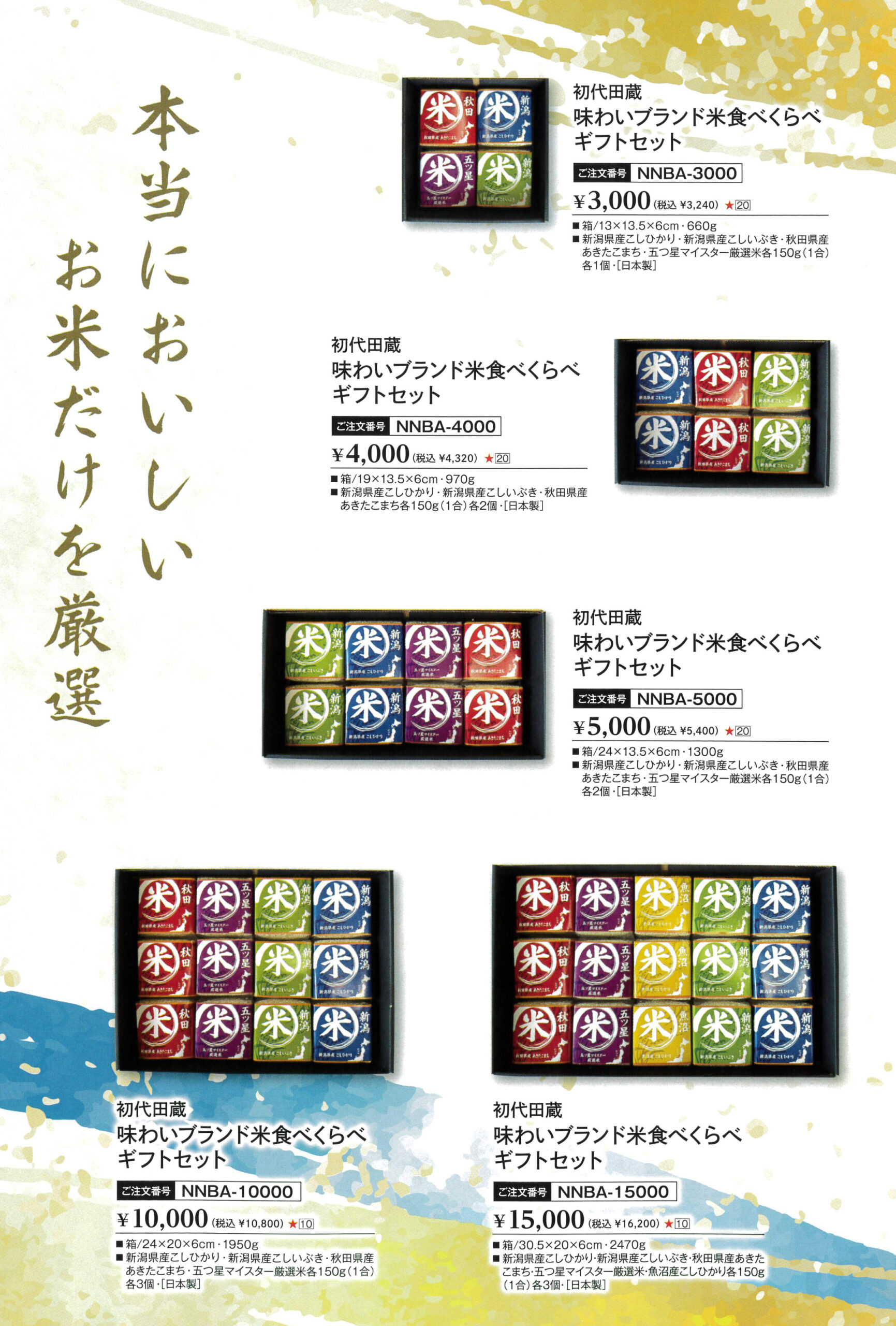 選りすぐりのお米を詰め合わせた「国産米ギフトセット」はもちろん、カタログを受け取った方がお好きな品柄を選べる