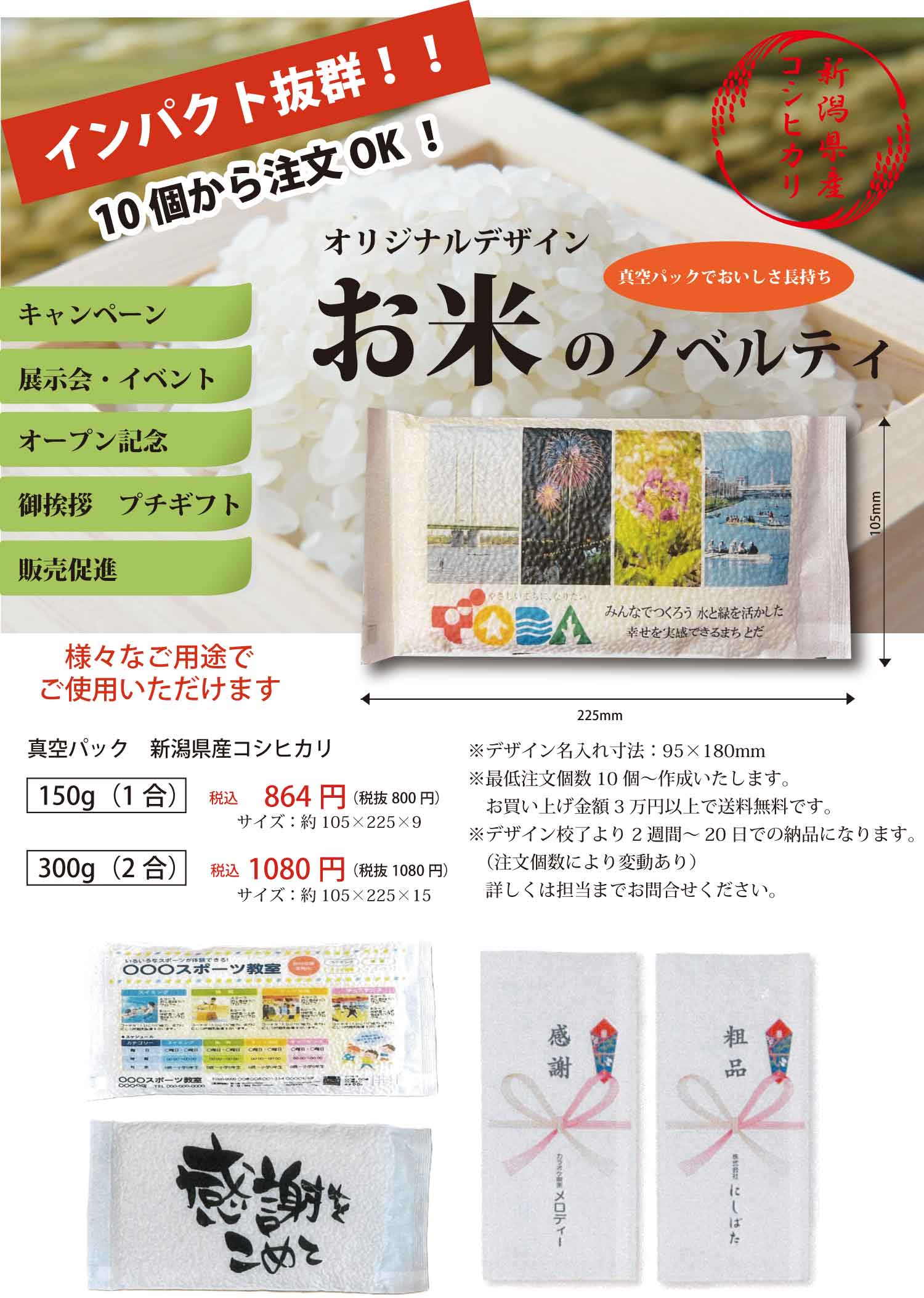 ◆新潟県産のコシヒカリは1合・2合のサイズで真空パック パッケージ